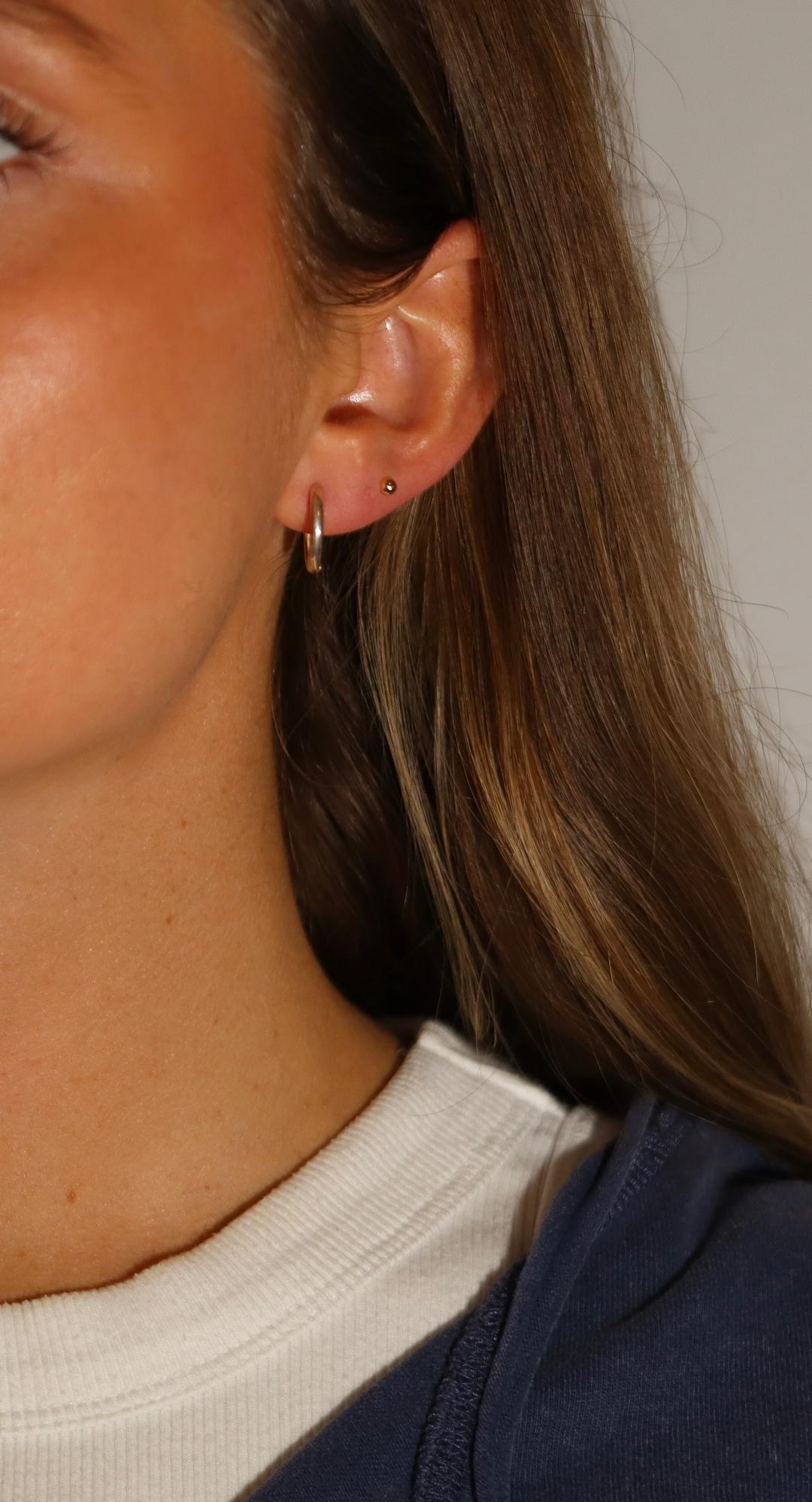 Classic sterling silver huggie earrings with a sleek, polished finish that hugs the earlobe for a minimalist, timeless look. Perfect for everyday wear or stacking with other earrings for a modern, layered style.