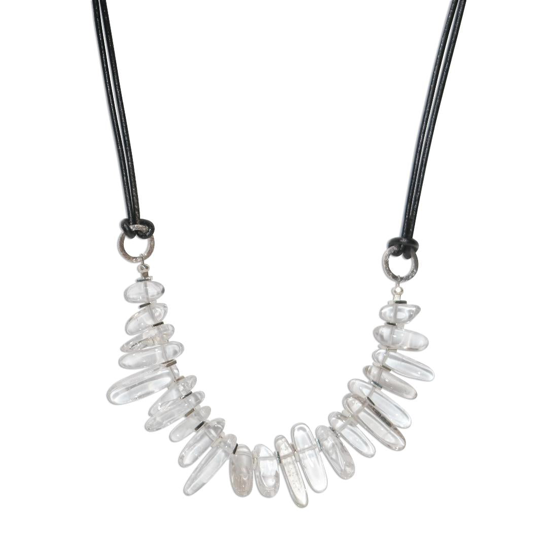 The stones are strung on a durable black leather cord, finished with sterling silver ring accents for a rustic, earthy feel. Lightweight yet eye-catching, this necklace is perfect for nature-inspired outfits or adding an artisan touch to everyday wear.
